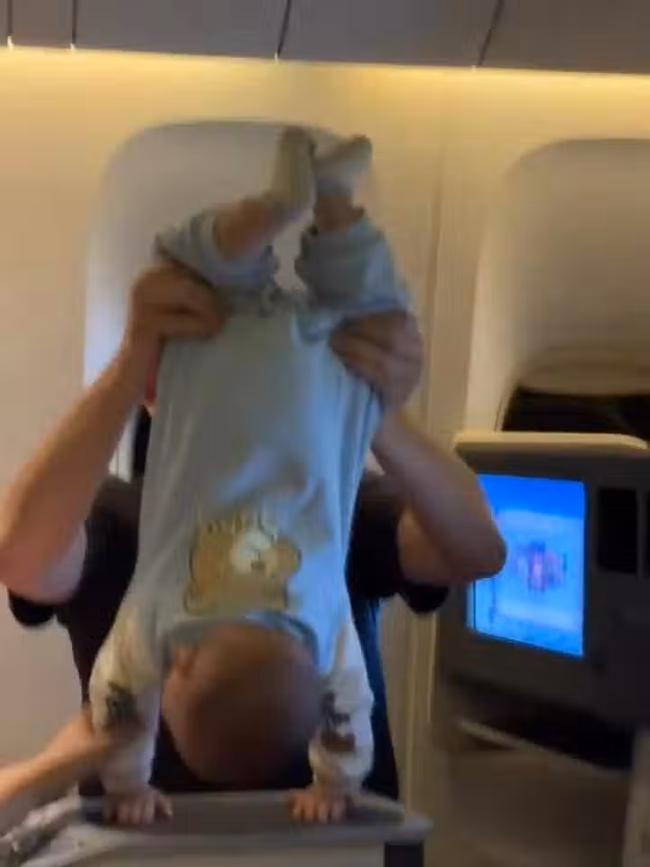 其實嬰兒很喜歡倒立的,只要脖子穩了就沒問題的!看的出來兩個寶寶玩的很開心!騎在世界冠軍的頭上,這兩個孩子以後肯定有料啦!