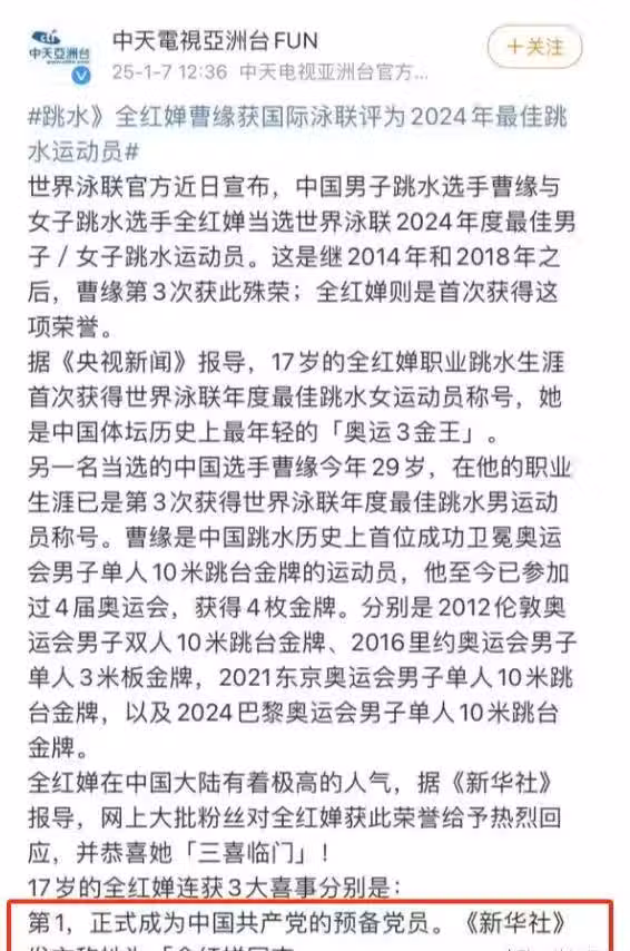 曝17歲全紅嬋成預備黨員!媽媽和女兒視頻太開心,家裡豪車已