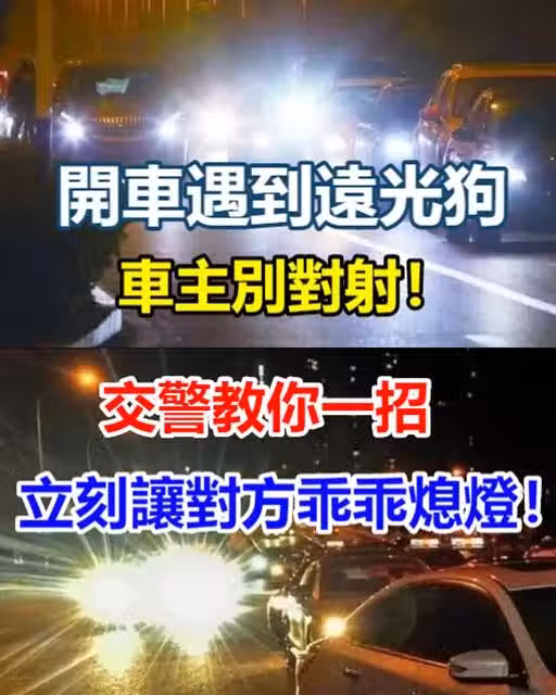 開車遇到「遠光狗」,車主別對射!交警教你一招,立刻讓對方乖乖熄燈!