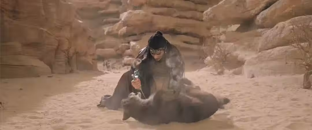這一次,已經逃走的女主去而復返,一記利箭,為男主解圍,而男主也一刀砍死了沖向女主的惡狼。