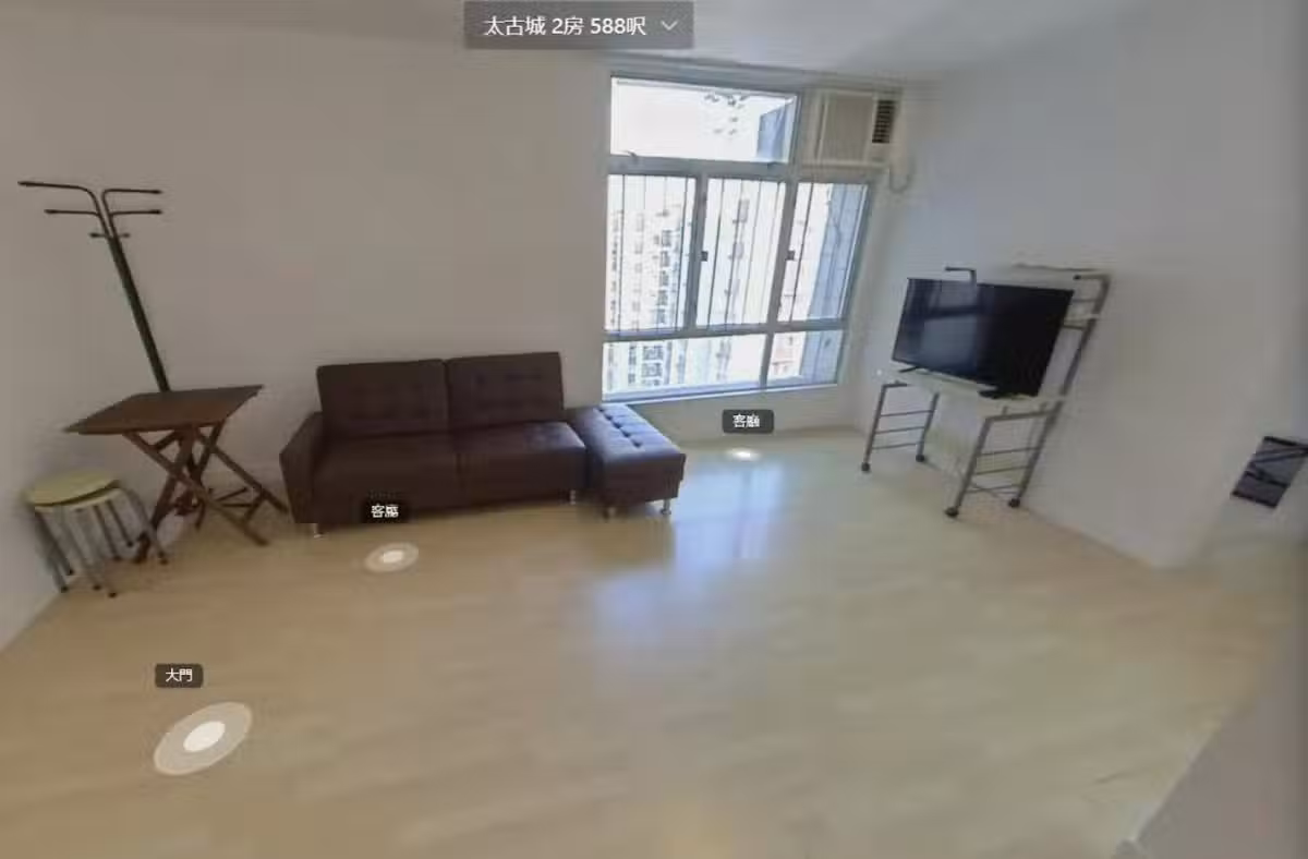郭少芸買入的這套房子屬於太古城海天花園恆天閣高層D室,實用面積僅僅588平方尺(約合54.63平方米)——這套房子的結構為兩房一廳,是全新裝修,廚房做開放式設計。房子面積並不大,不過用作租賃還是相當受歡迎,尤其是比起千尺的豪宅更容易出租。