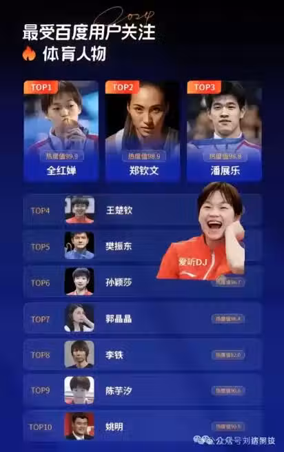 百度最新發布的年度數據,便是全紅嬋超高人氣的有力證明。在體育明星榜單中,她毫無懸念地榮登榜首。若將目光放至整個熱點人物排行榜,她的名字赫然排在特朗普和普京之後,位居第三。如此亮眼的成績單,足以彰顯她在全球範圍內的影響力。
