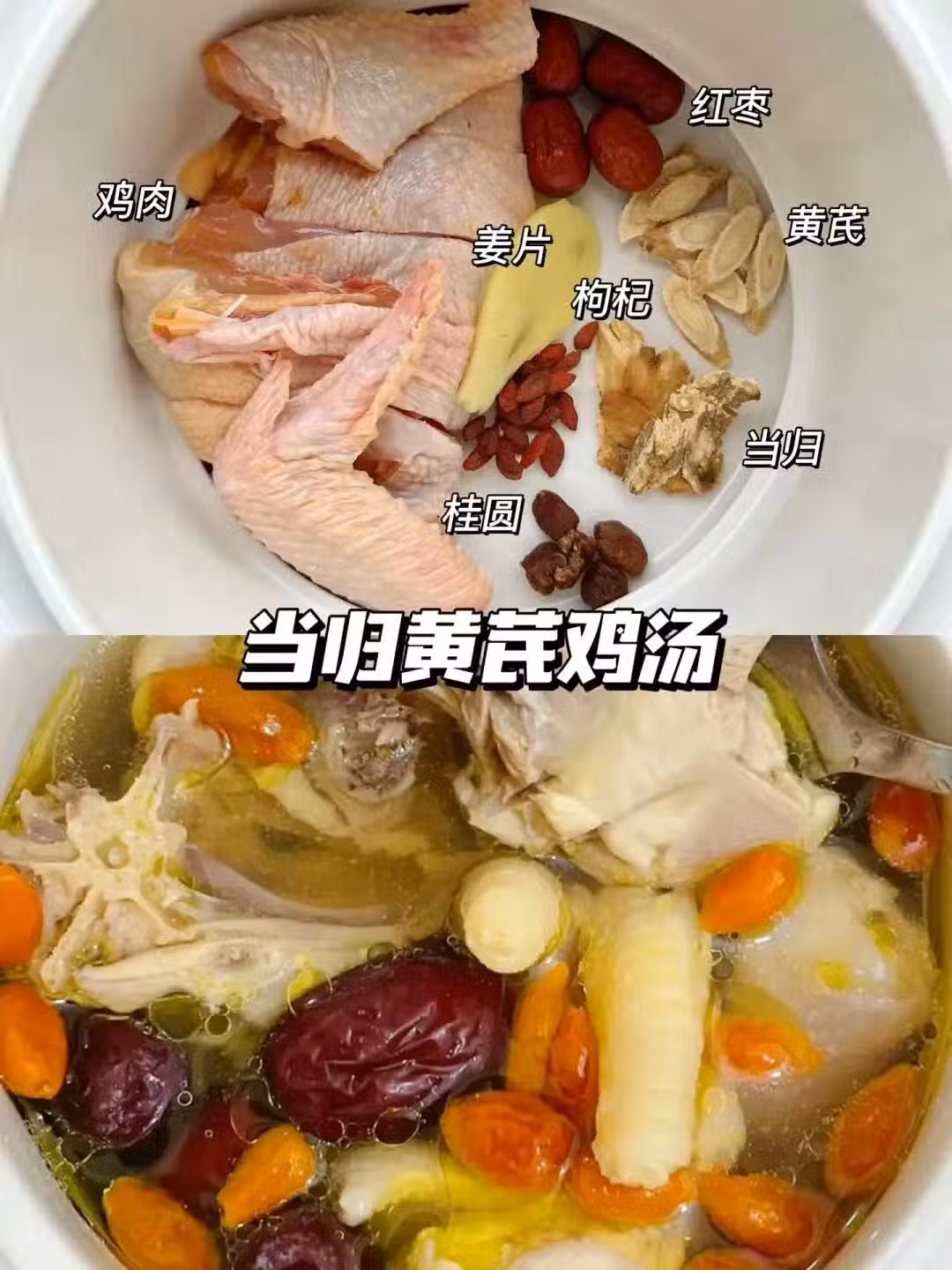 食材準備:雞肉 紅棗 黃芪 當歸 薑片 枸杞 桂圓