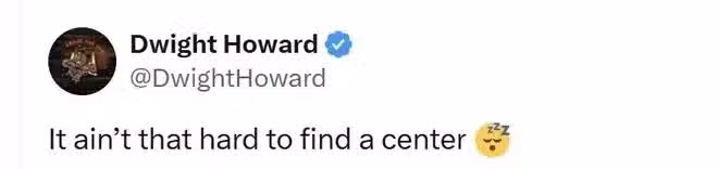 雖然聯盟中很多球隊都將自己陣容中的首發中鋒擺上貨架,但是始終沒有完成行之有效的交易,對此,那個場外最具有流量的球星德懷特霍華德,又開始整活了,他公開在社交媒體上面發聲:找個中鋒並不難的。不得不說,霍華德這樣的舉動,實在有些看不下去了,偌大的一個聯盟竟然沒有一個能拿出手的中鋒,甚至讓湖人當家球星安東尼戴維斯陰陽管理層,直言自己當時在2020年爭冠就是,主打四號位。