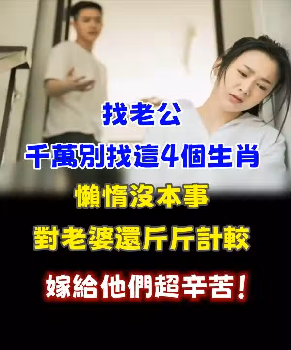 嫁給他們超級辛苦!找老公「千萬別找這4個生肖」 懶惰沒本事「對老婆還斤斤計較」