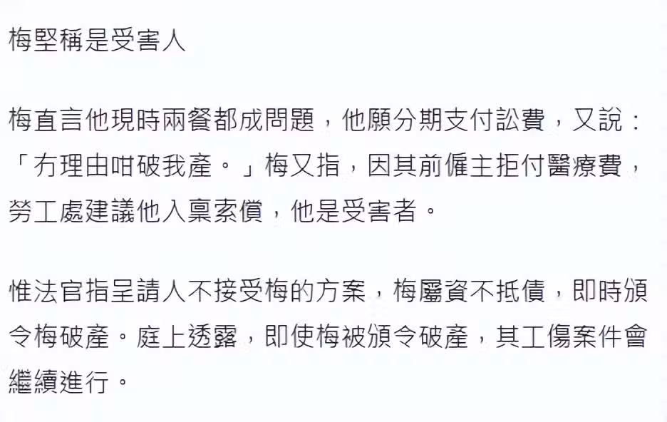 梅啟明對此判決十分不滿,還質疑餐廳老闆是想把自己整死後不用賠錢把。