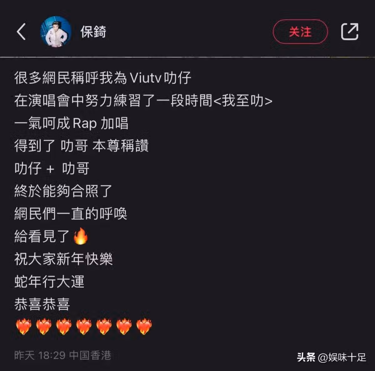 就在昨天的大年初一,吳保錡興奮地在社交平台發文,分享自己在演唱會練習了一段陳百祥(叻哥)的經典歌曲《我至叻》,更表示叻哥本人對他的表現給予高度認可。