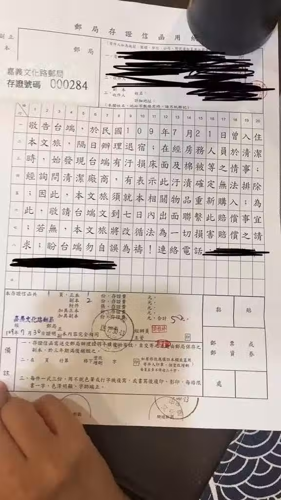 根據《ETtoday新聞雲》報導,這位網友在Dcard上發文,表示之前和家人去嘉義考轉學考,晚上回飯店前買了一瓶飲料,但因為不太好喝,所以並沒有喝完,就這樣蓋緊瓶蓋後放在桌上,沒打算再帶走,沒想到退房後隔天,卻接到了飯店電話,說房內的床墊、床單、被套等,全被飲料弄髒了,要他們賠償5萬元,甚至寄了存證信函,讓他們頓時超傻眼。