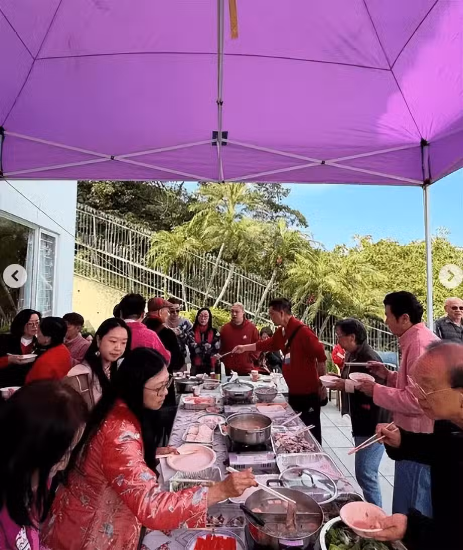 之後,汪明荃亦在社媒上分享了多位圈中藝人上門拜年的照片,並留言:「30/01/2025,大年初二大食會,恭祝大家新年行大運身體健康萬事如意!」其中可以看到汪明荃家中客廳放有一張大型的灰色沙發及紅色圓桌,更在戶外搭棚讓各人打邊爐,相當盡興。