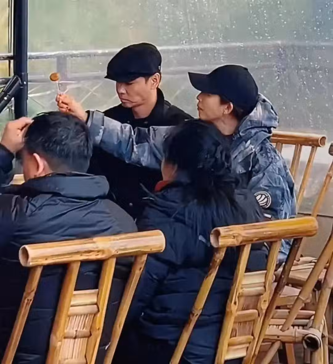 大年初三,有網友在重慶南山偶遇蔡少芬帶著一家老小來旅遊。
