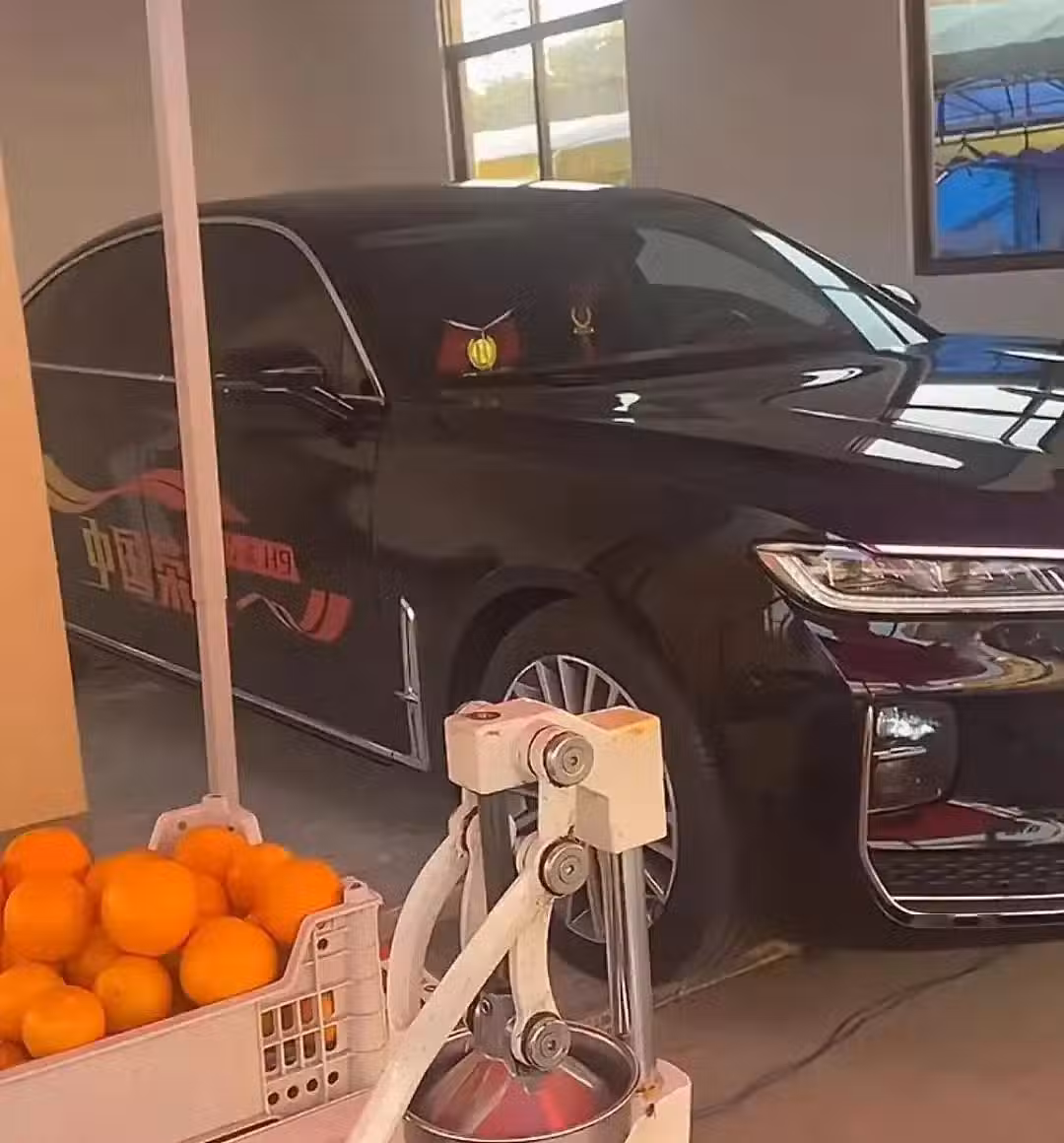 全爸開著全紅嬋的紅旗h9去做保養,車上四個字中國榮耀太耀眼~~