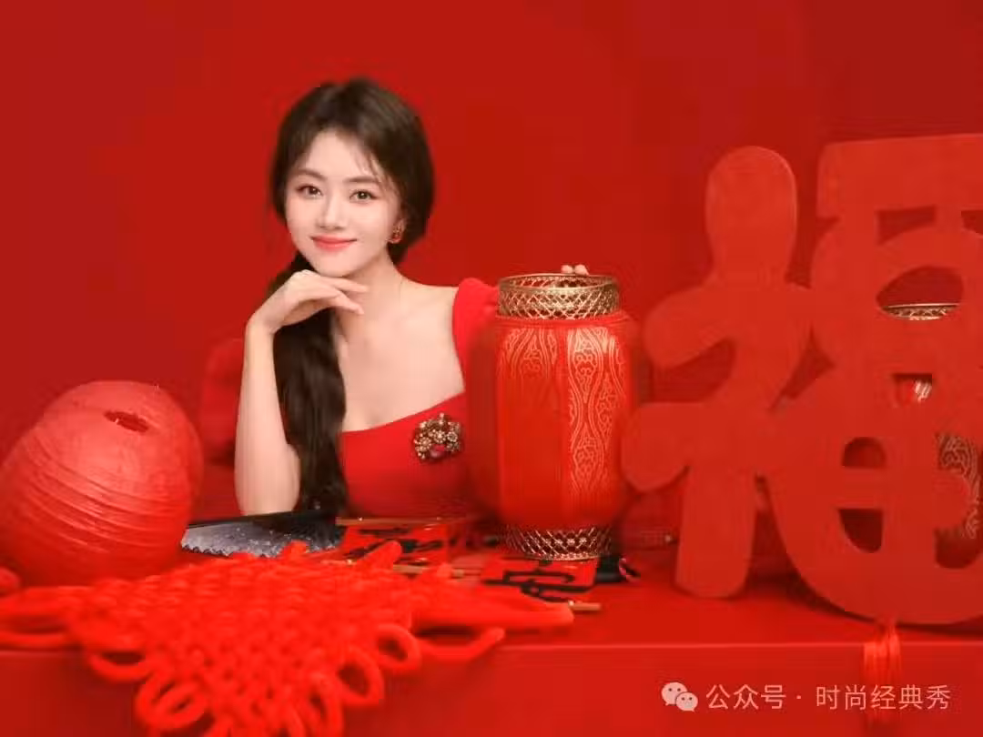 譚松韻新春時尚大片:紅裝映麗影,佳節展風華