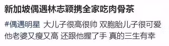 2月2日,還有網友就分享出在新加坡偶遇林志穎攜全家吃肉骨茶動態。