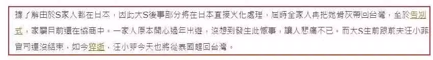 他們本來是一家人外出旅行,在日本玩的開開心心,沒想到發生這種事,現在全家都處在悲痛中,她的前夫汪小菲從廣東轉機飛回台灣,安排後事。