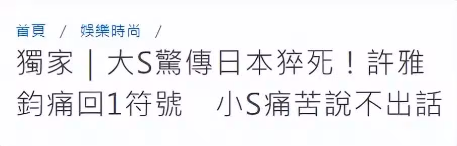 不過台媒爆料是小S老公許雅鈞帶團,年初三前往日本旅行,沒想到大S途中不幸感染流感,有當天的殯葬業者在2日爆料,接到大S的「團」,這個團不是旅行團,而是指喪事。