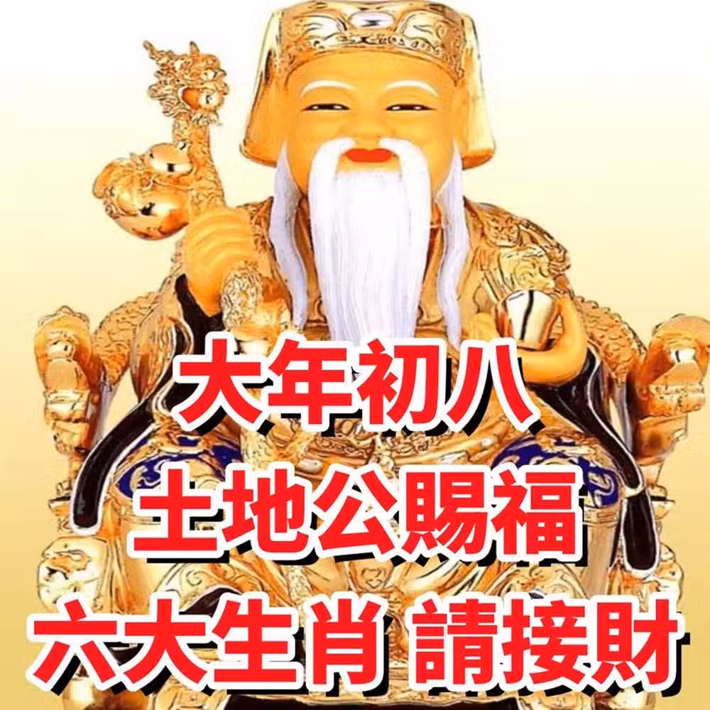 大年初八,土地公賜福,六大生肖請接財!