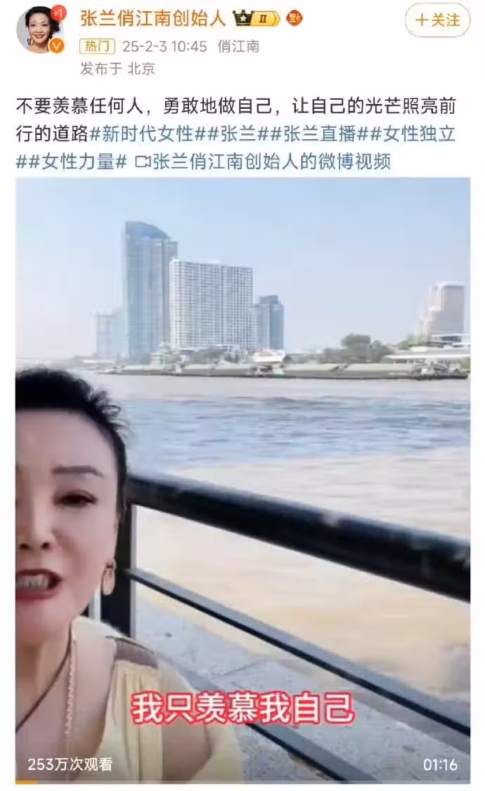 稱不要羨慕任何人,勇敢地做自己,讓自己的光芒照亮前行的道路。此舉遭到網友痛批,女演員穆婷婷更是轉發了張蘭的微博怒懟她沒底線。