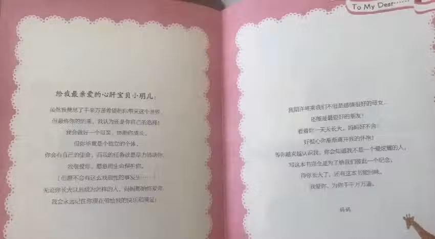 她在書中提及自己費盡千辛萬苦,終於讓女兒誕生在這個世界,但堅持女兒之所以到來是自己的選擇,而她的職責則是做好「媽媽」,幫助女兒成長、獨立,「無論你長大以後成為怎樣的人,媽媽都始終愛你」。