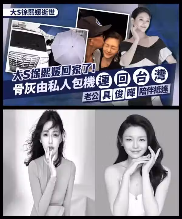 《自由時報》今日(5日)獨家報道,大S徐熙媛的骨灰今日已從東京羽田機場,由VistaJet的私人包機運回台灣,於下午3時許已平安落地台北松山機場。