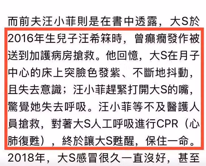 由於大 S 本身患有癲癇,且屬於高齡產婦,懷孕後她的身體狀況變得非常不穩定。