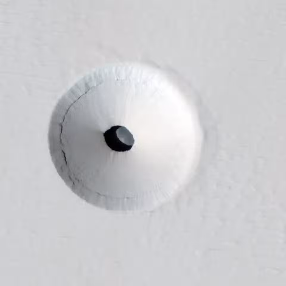 上圖是NASA火星軌道勘察器2014年在火星赤道附近的帕蒙尼斯火山斜坡上發現的一處「天窗」,這些天空口通向了一個地下洞穴,洞穴直徑35米,深115米。可以看到一部分陽光照射到了洞穴底部。