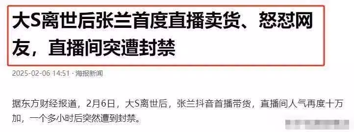 小S的影響力還是很大的,尤其是回應的那句話,有很強的殺傷力,影響正在擴大,很多人開始將矛頭指向了張蘭,認為她沒有一句實話,導致張蘭在2月6日開播後很快被封禁。