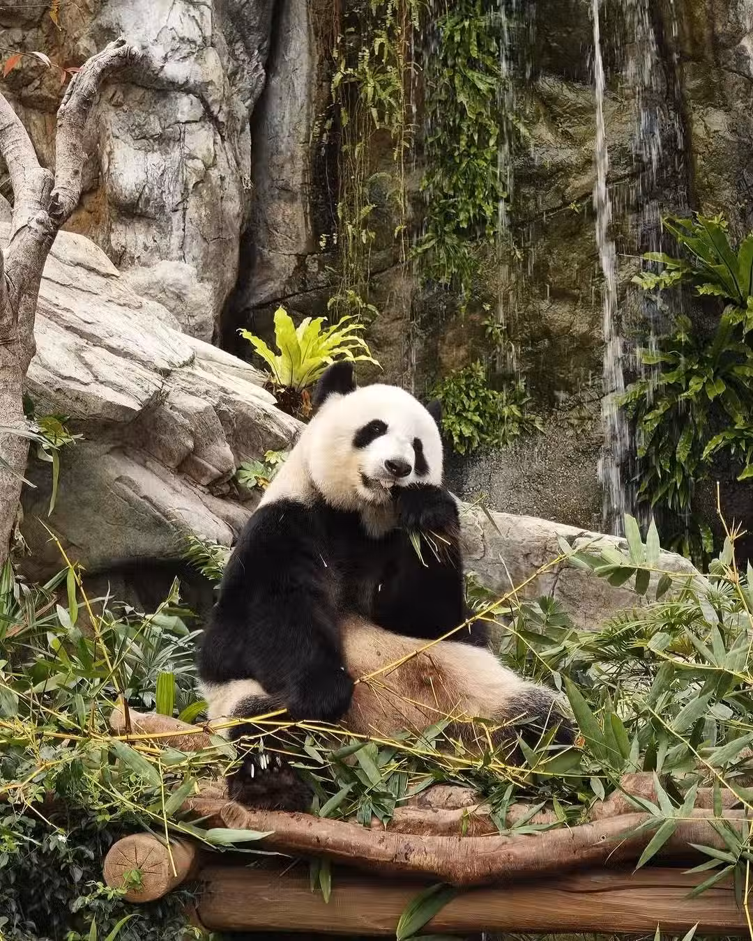 看到幾隻熊貓慵懶的享受生活,唐詩詠自認羨慕不已,畢竟為了生計還要奔波的她坦言還做不到如此愜意。---