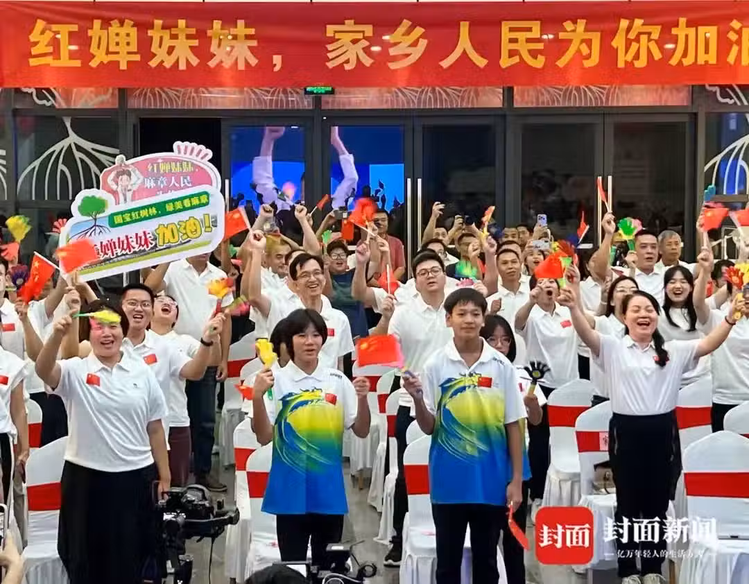 全紅嬋的家人和鄉親們一起觀賽(楊峰攝)