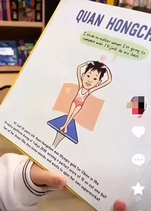 在墨爾本的一家書店裡,有一本面向中小學生的閱讀圖書,其中關於全紅嬋的資料引起了許多家長和學生的興趣。