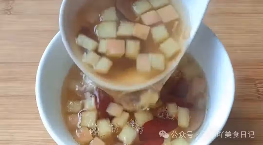 出鍋享用:當鍋中的食材煮至軟爛,湯汁濃郁時,即可關火出鍋。將煮好的蘋果蓮子湯倒入碗中,稍涼後即可享用。湯品中融合了蘋果的清香、紅棗的清甜以及蓮子的甘澀,口感層次豐富,令人回味無窮。