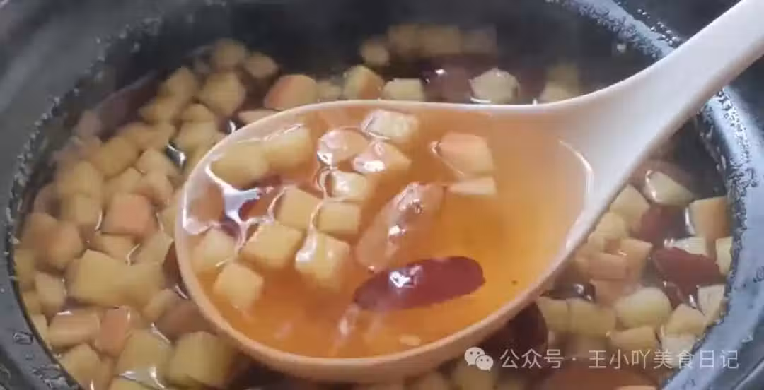 繼續煮制:用勺子將鍋中的食材充分攪拌均勻,蓋上鍋蓋,繼續小火煮20分鐘。這段時間裡,蘋果的營養成分與蓮子、紅棗的精華充分融合,形成一鍋香甜可口的湯品。
