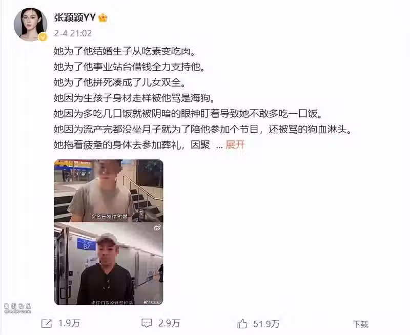 前女友張穎穎就在2月4日發文吐槽,指汪小菲用大S的死立人設,傷害了前妻又傷害了現任。