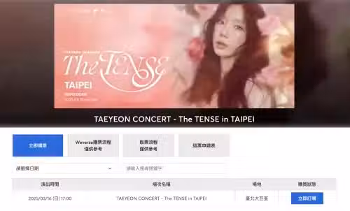 太妍(SM官方正名:泰妍)倒數1個月來台!她將在3月16日於台北大巨蛋舉辦演唱會《TAEYEON CONCERT - The TENSE》,門票今(8)日中午12點在「Tixcraft 拓元售票系統」全面啟售,S♡NE(官方粉絲名)趕緊辦好拓元網站會員、設好鬧鐘,準時進入系統搶到神位!