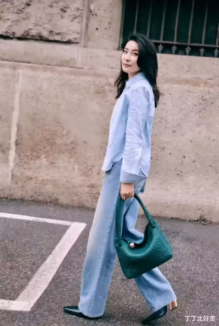 郭晶晶帶火了一種初春新穿法:襯衫 直筒牛仔褲,簡約時髦又洋氣~~