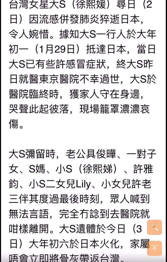 大S臨終前全家相伴左右,現場哭聲此起彼伏氛圍哀傷,具俊曄悲痛回應,黃春梅發聲,會帶熙媛回家