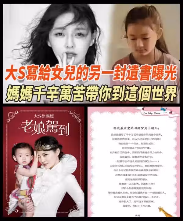 大S猝逝,大S生前「寫給女兒的信」曝光 ,網友看哭了
