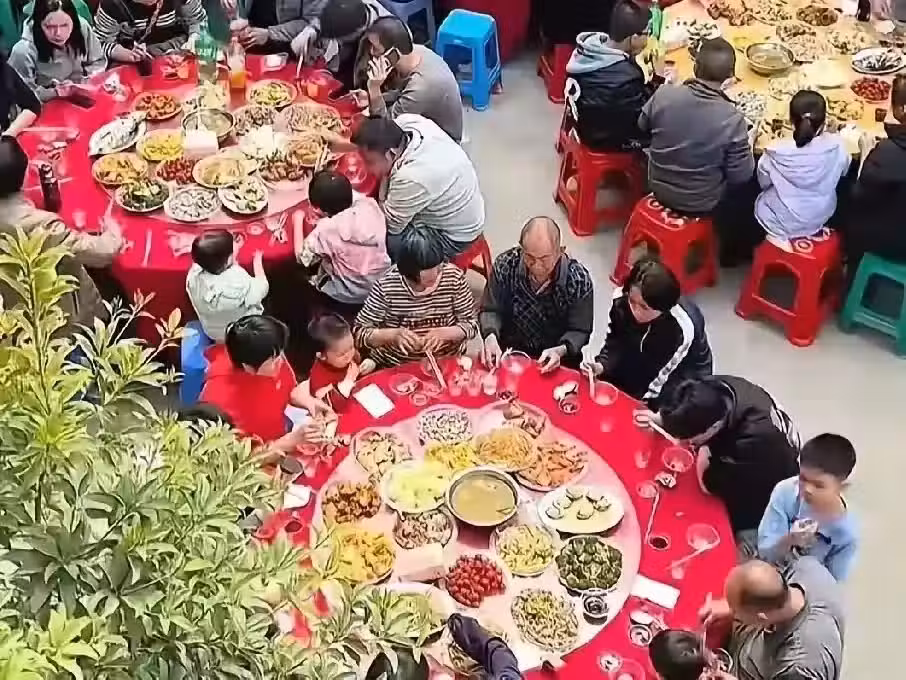 全紅嬋家年例曝光,一桌18個菜、擺了十幾圍,哥哥親自掌勺迎賓客