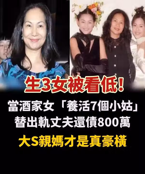 生3女被看低!當酒家女「養活7個小姑」替出軌丈夫還債800萬 大S親媽才是真豪橫