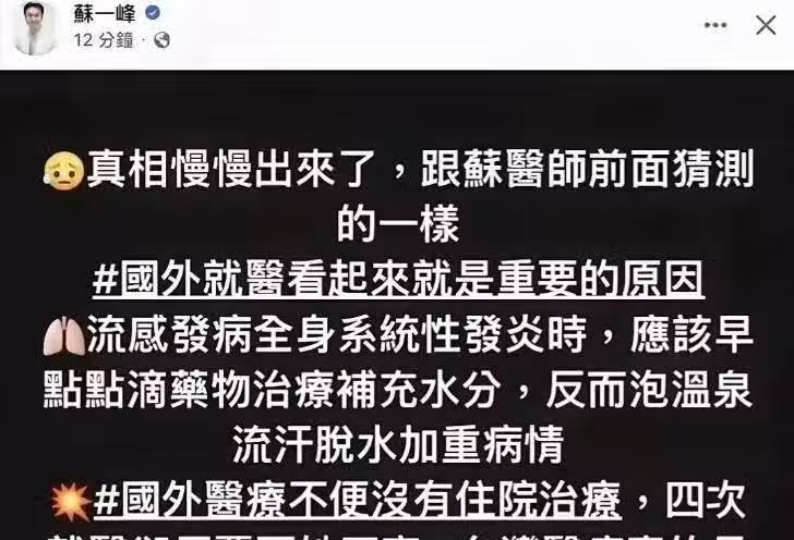 破大案了 ! 胸科醫生談大S病亡真相:根本不是流感,還去泡溫泉很離譜