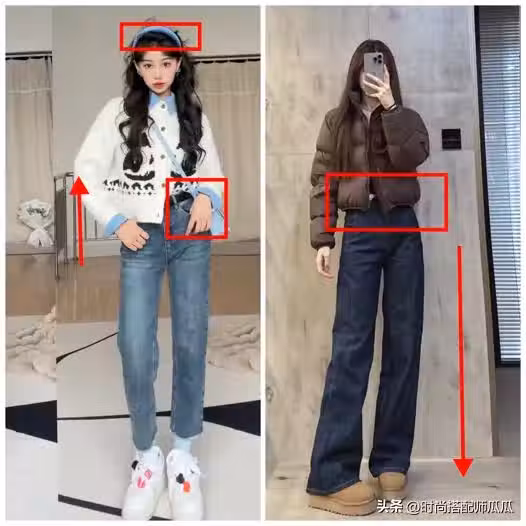 打造出高腰的方式主要有兩種呈現方式,第一種方法比較簡單,選擇本身就帶有高腰設計的褲子,上衣穿短款或者是塞進去穿,把褲腰的位置露出來,腿長的效果輕鬆get;另外一種方法,是採用配飾打造視覺重心上移的,也能達到顯腿長的目的,選和衣服顏色形成對比的色彩,裝扮在上半身即可。