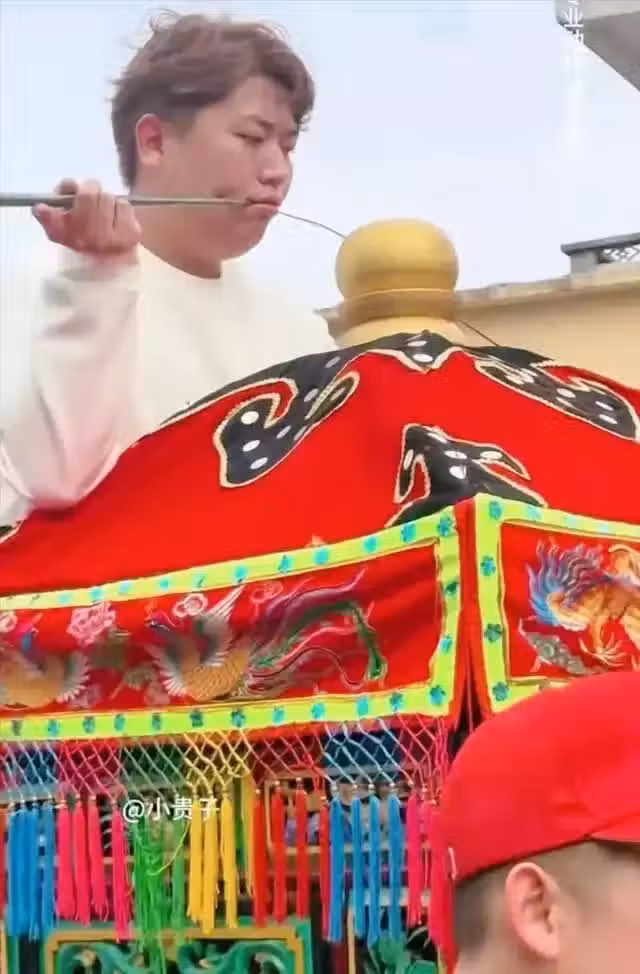 正月十五的廣東湛江邁合村,鑼鼓聲能震碎三公里外的奶茶杯。全紅嬋老家這元宵節過得比春晚還熱鬧,游神隊伍里最搶鏡的不是舞獅隊,而是她哥全進華——嘴巴插著兩根鐵簽子,穩坐神轎C位,這造型直接讓外地網友集體瞳孔地震。有山東老鐵當場掏出手機搜「廣東人是不是人均鐵齒銅牙」,本地大爺嘬著牙花子淡定回懟:「這叫穿令箭,祖宗傳了上千年,公祖老爺保平安!」