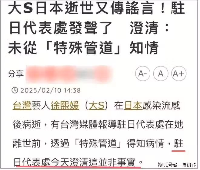 日本網友質疑大S死因,稱從特殊渠道得到真相,駐日代表處聲明!