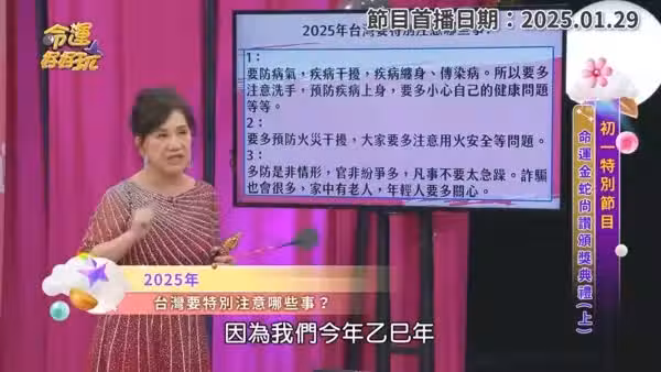 有網友翻出影片後細究這段預言的內容,周映君解釋今年乙巳年的命理特性,指出「乙巳年會克金,而金位於西方,火克金的特性使得火災風險明顯提升」。