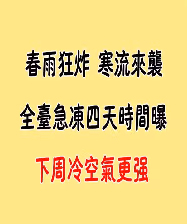 春雨狂炸!「這天」恐寒流再殺到,全台急凍4天時間曝,下周冷空氣更強,注意保暖!
