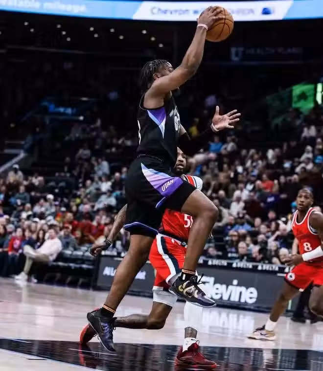 2月14日,快艇背靠背客戰爵士。比賽開始,爵士延續了上一場大勝湖人的手感,僅4分鐘就命中5記三分,而快艇這邊顯得有些慢熱,西蒙斯接到哈登空接秒傳拿下快艇生涯首分;次節,爵士再送出14-2的攻勢很快將分差拉開到兩位數,鮑威爾和哈登的發揮幫助快艇止血,半場結束,爵士60-54快艇;易邊再戰,快艇進攻手感還是一般,爵士穩紮穩打保持領先,不過末節快艇突然發起反撲,西蒙斯連續得分幫快艇迫近比分,雙方一直打到108平進入加時;加時賽鮑威爾狀態火熱,一人獨攬9分,最終,快艇120-116險勝爵士。