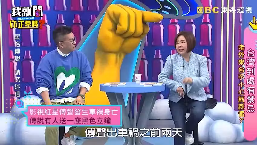 對於華人來說,送鍾十分不吉利,因為剛好有「送終」的諧音,所以拿鐘錶類當作禮物絕對是大忌!話鋒一轉,于美人也進一步說明,送鐘的不祥寓意其實可以被破解,除了給送禮者1塊錢當作是自己買下的,也可以將收到的鐘表放在廁所一個月,象徵「有始(屎)有終(鍾)」,隨後她也強調自己絕對不是胡說,希望大家也不要太過鐵齒。