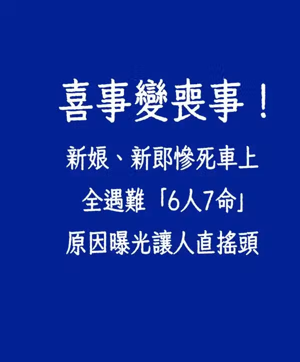喜事變喪事!新娘、新郎慘死車上全部遇難「6人7命」原因曝光讓人直搖頭