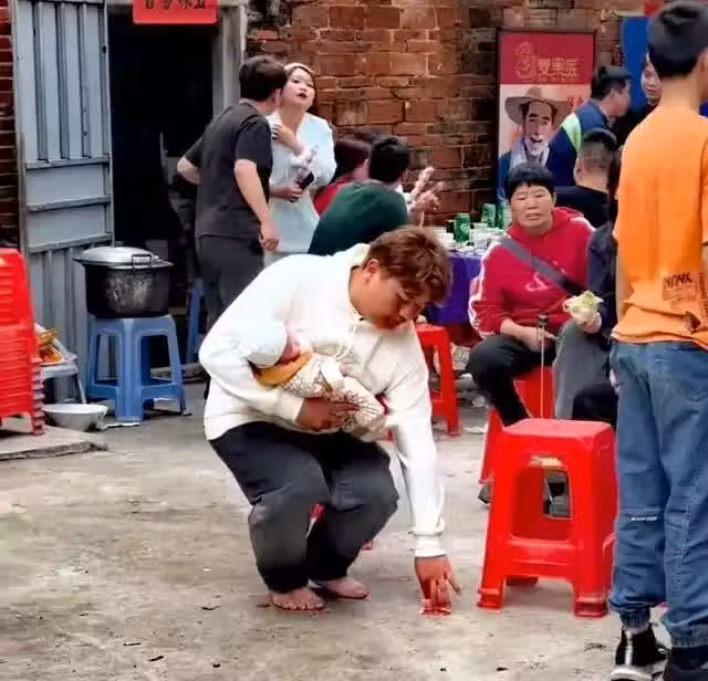 全進華單手抱著孩子在院子裡溜達,這廣州的氣候就是宜人,光腳踩在地上都不覺得涼。這時候,有人往孩子這兒扔了100塊錢,全進華俯身利落地撿起來,麻溜兒地給堂姐送了過去。
