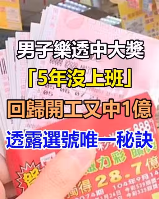 男子樂透中大獎「5年沒上班」!回歸開工「買又中1億」透露選號唯一秘訣