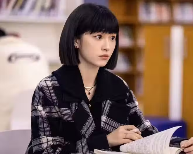 因為角色的設定是中學生,所以她的造型也格外學生氣,齊肩的短髮配上齊劉海,一身校服哪怕真的混在學生中間也毫無違和感。